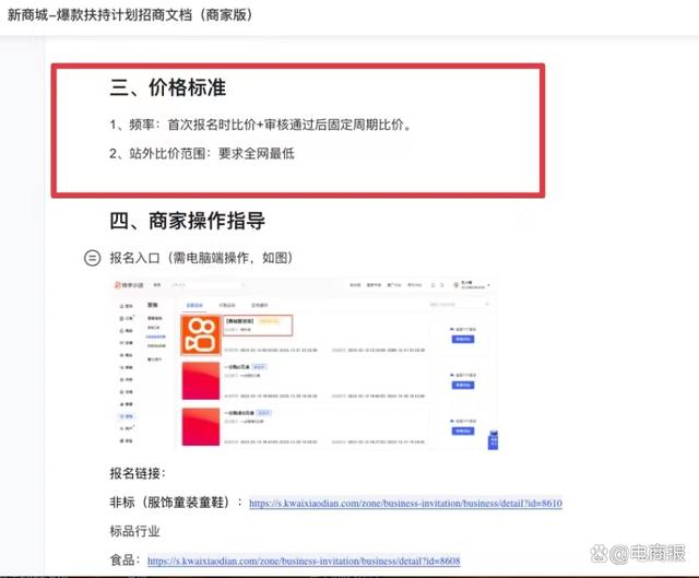 而快手电商也正在筹备“新商城”,将价格作为核心抓手,新增的“低价好物”栏目中,参与活动的商品除了首次报名时需要比价之外,审核通过后还需要在固定周期进行比价,站外比价的范围要求是全网最低。